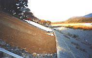 多自然型護岸工法の一環として護岸を覆土・植生し、